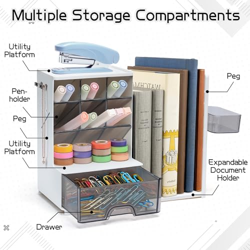GwaOery Organiseur de bureau avec porte-documents extensible et compartiments réglables - Multifonction - Rangement pour stylos, papeterie, livres, bijoux, cosmétiques - Pour la maison, le bureau