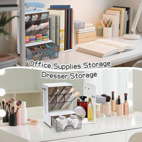 - Tiroir de grande capacité et application multi-scènes, haute praticité : le tiroir inférieur de grande capacité permet de ranger des articles privés. Cet organisateur de bureau est non seulement une bonne aide pour l'organisation de papeterie de bureau, mais également un artefact de rangement pour les cosmétiques et les bijoux sur la coiffeuse, répondant aux besoins de la maison et du bureau.