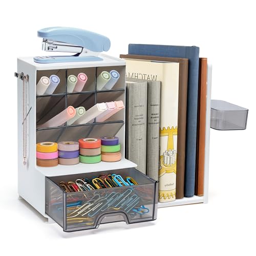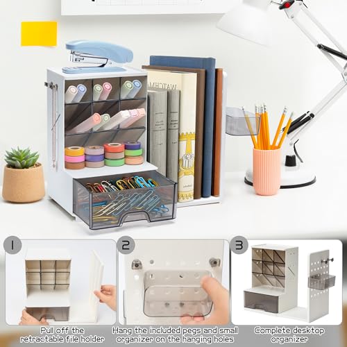 - Combinaison multifonctionnelle, solution de rangement à guichet unique : cet organisateur de bureau intègre un porte-documents rétractable, un tiroir de grande capacité et des compartiments inclinés, pour ranger facilement des articles de papeterie, des documents, des rouges à lèvres, des bijoux et d'autres articles, gardant votre bureau bien rangé.