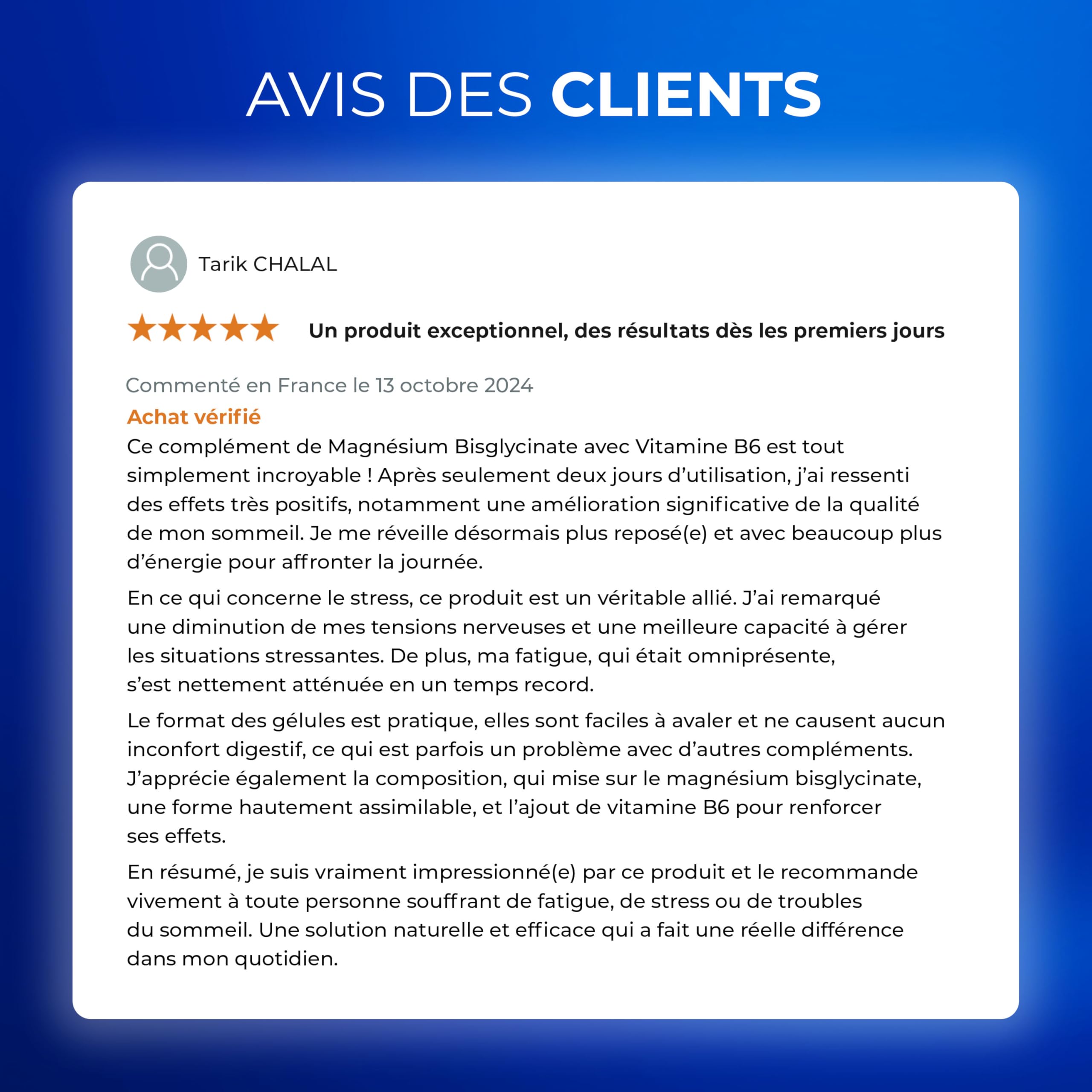 Magnésium Bisglycinate + Vitamine B6 - Sommeil, Stress, Fatigue - Absorption Maximale & Assimilation Facilitée - 90 Gélules Vegan - Nutrimea - Fabriqué en France