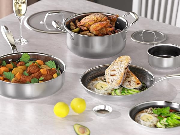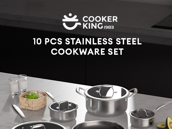 COOKER KING Stainless Steel Cookware Set, Pots and Pans Set Non Stick, Hybrid Ceramic Cookware,Non-Stick Frying Pans, Saucepans, Saute Pan & Stock Pot, Non-Toxic, Oven Safe, Induction Compatible