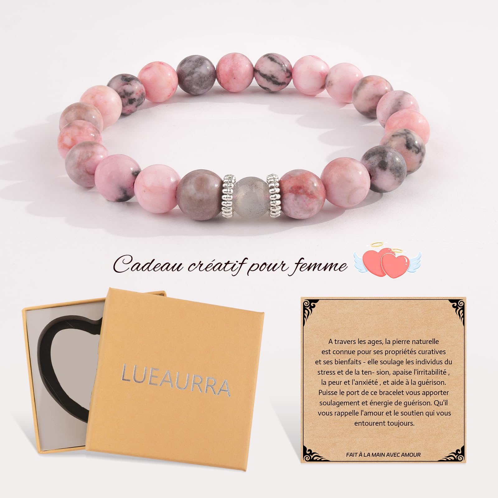 Lueaurra Idee Cadeau pour Femme Bracelet Pierres Naturelles Femme Original Cadeau Ado Fille Cadeaux Noel Femme Cadeau Anniversaire Bracelet Cadeau pour Amie Maman Sœur Maitresse